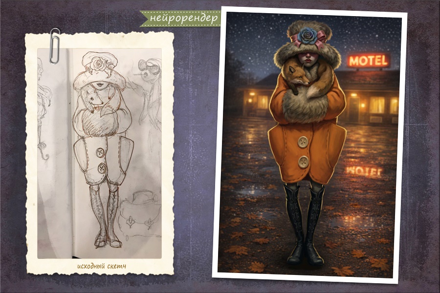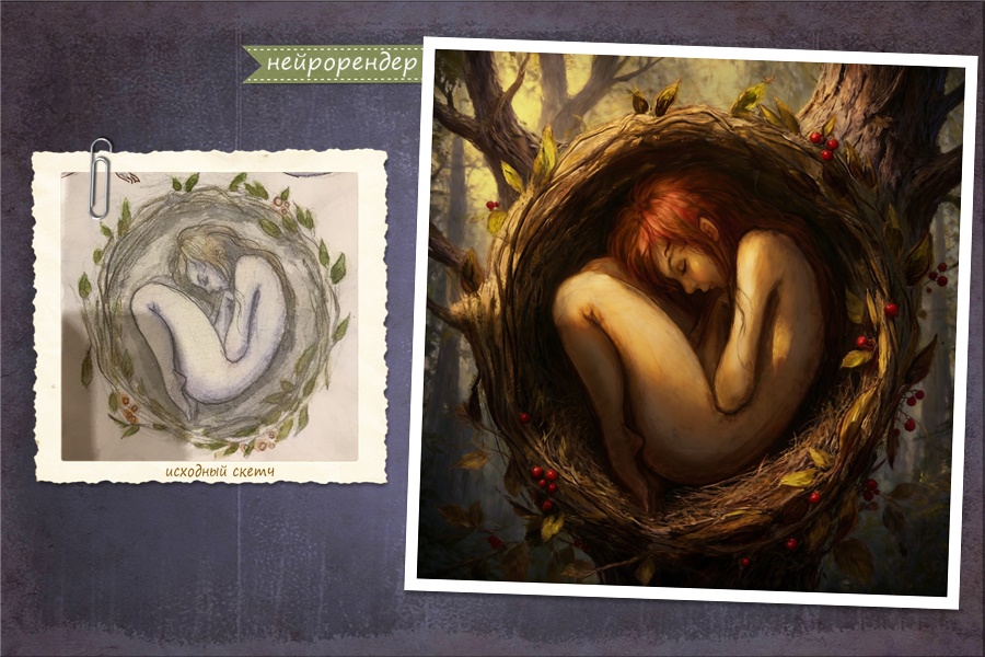 С самого начала появления «рисовательных нейронок«, я хотела, чтобы они умели рендерить мои скетчи. Иначе, зачем это всё художнику? Генерации прекрасны, но они не мои. Да и теперь каждый может спокойно «нарисовать» себе всё что захочет 🙂 Время многое переосмыслить и пересмотреть. Прежде всего, обернуться НА СЕБЯ и понять кто я и зачем, если всё что я умел раньше, теперь делают роботы…