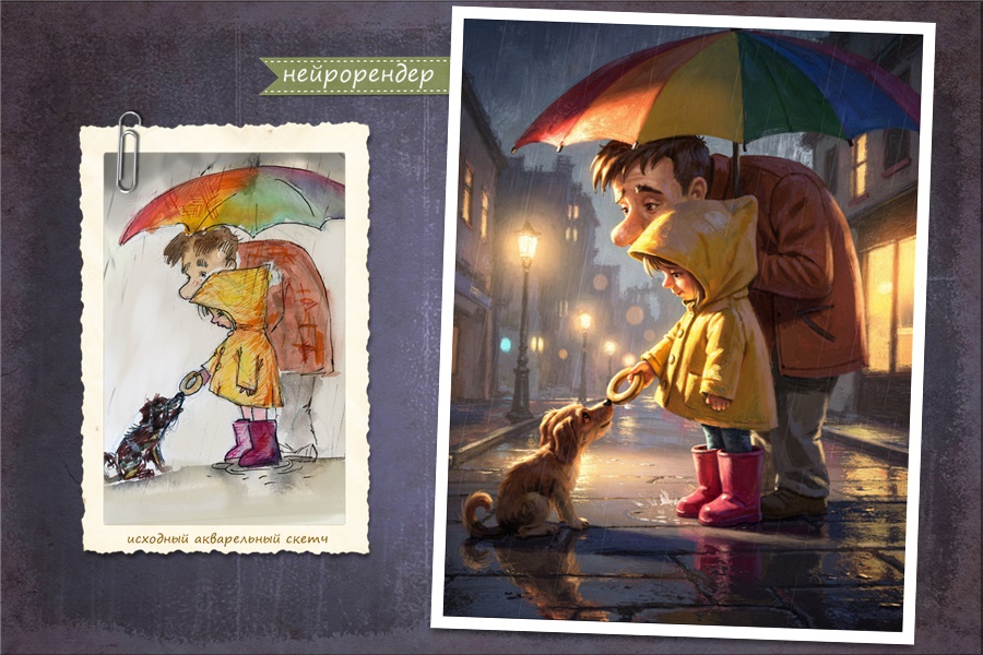В лавине арт-контента, который становится всё более безликим и бездушным, снова начнут сверкать бриллиантами настоящие художники(нет, это не про меня :)! И даже не нужно быть Ван Гогом, чтобы это случилось. Здесь слово «насмотренность» заиграет новыми красками! Многие уже пресытились этим прекрасным нейроконтентом. И уже совсем скоро, человек снова обратит свой взор на «неидеальное» искусство, которое раньше вызывало лишь усмешку. Нейросети умеют рисовать «в стиле» многих цифровых художников, копируют технику. Но форма всегда проигрывает содержанию! Красивая но пустая, она рано или поздно становится неинтересной и отправляется на «чердак»…Человек так устроен, ему нужна глубина. И этот дайвинг никогда не заканчивается. И если с концепт артом вполне неплохо справляются нейросети, то с историей, которая рассказывается через качественную иллюстрацию она не справится. Но использовать нейронку как инструмент, вполне возможно. И сейчас эта возможность уже достаточно проявлена. Нейросети рендерят арт на основе ваших скетчей! Некоторые из них делают это потрясающе точно! И более того, одна из них «рисует» в стиле, очень похожем на мой собственный(тем более, когда основа-мой эскиз). Однако, я считаю, что и сейчас и впредь, нейронки максимально подходят не для иллюстрации, а для концепт-арта. Иллюстрация как и живопись слишком сложное явление, чтобы быть ограниченной просто рендером по скетчу. Особенно акварельная иллюстрация! И ценность подобной работы будет только расти. Как всегда, «ручной труд» поначалу единственно возможный, а потом(после всех автоматизаций) единственно желанный 🙂 Никто не хочет конвеера, тиражей и повторений и даже покупать что-то хотят у людей, а не у роботов. Снова в цене эксклюзив и характер. И навыки, которые художник оттачивал десятилетиями не пропадут!