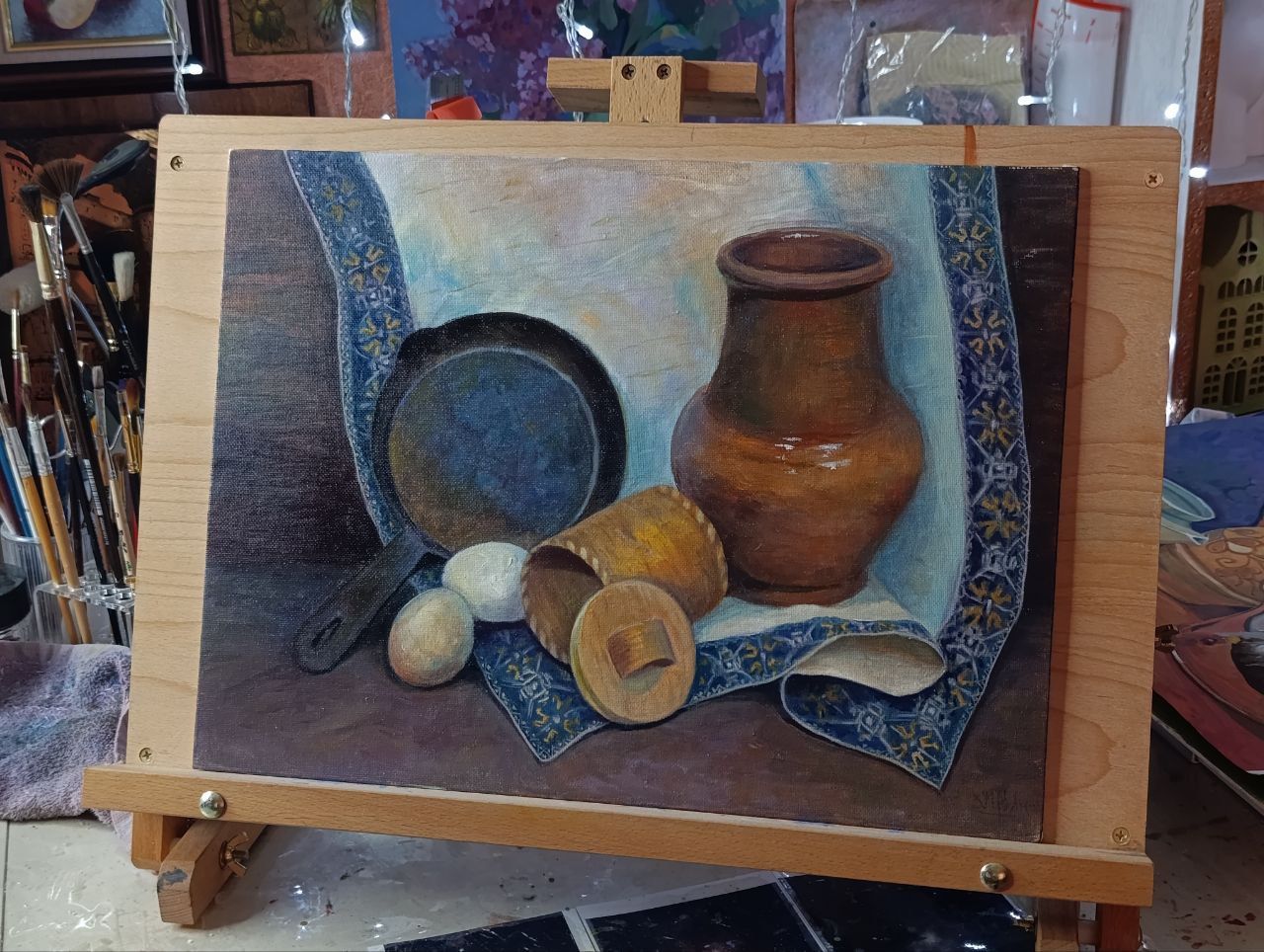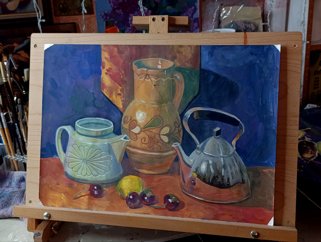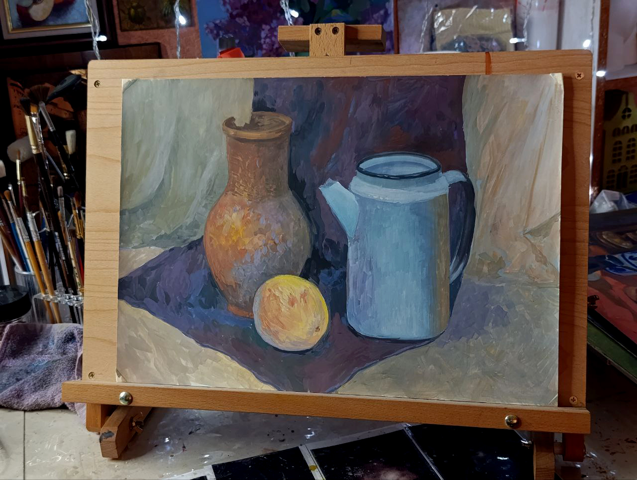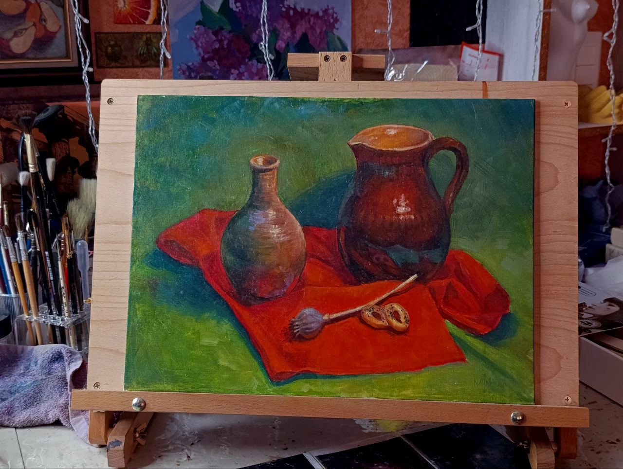 Студия. Масло, гуашь и горшочки :)