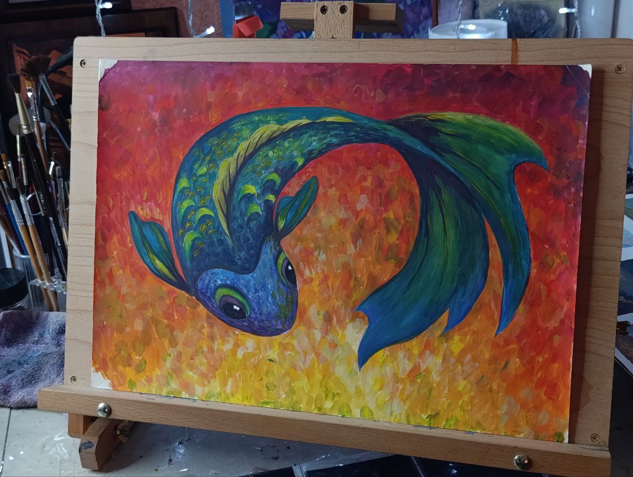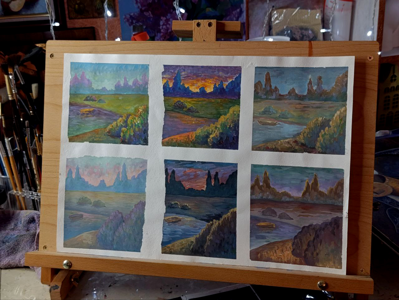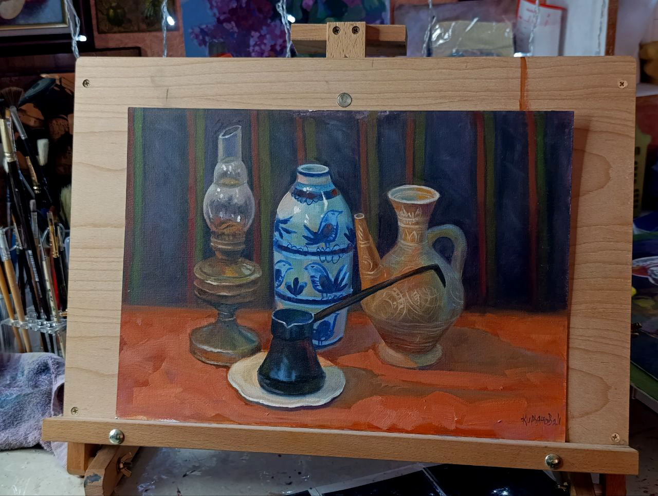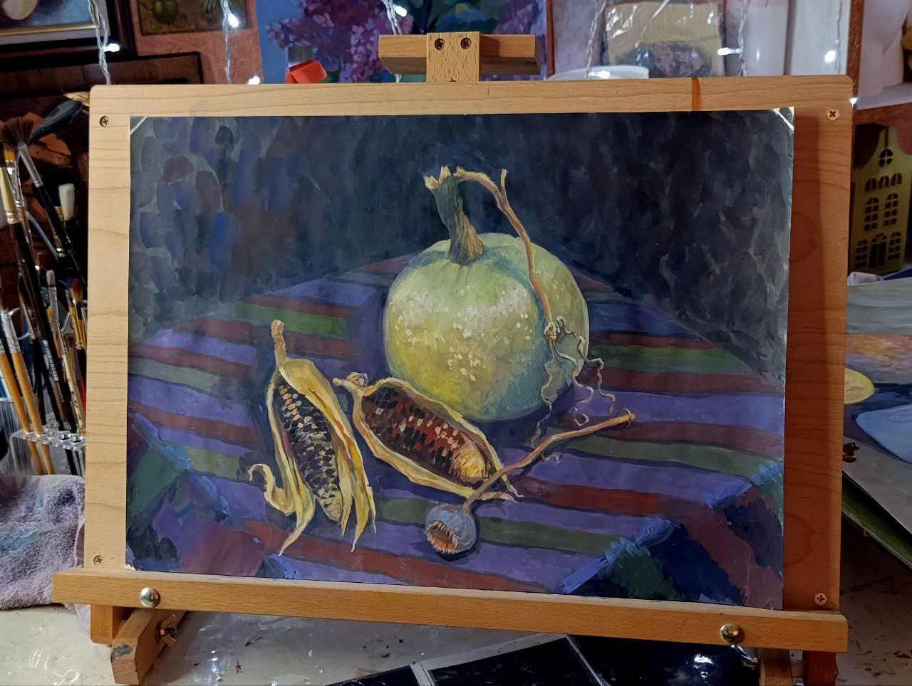 Студия. Масло, гуашь и горшочки :)