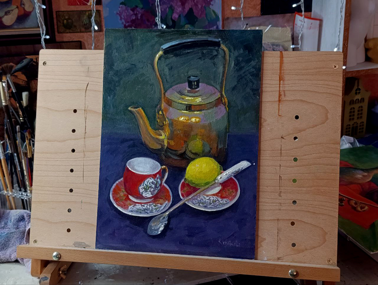 Решила походить в студию и порисовать стандартные постановки. Рисовала всегда, но горшочки меня обошли стороной 🙂 Мне понравилось. И атмосфера в студии всегда очень творческая и приятная.